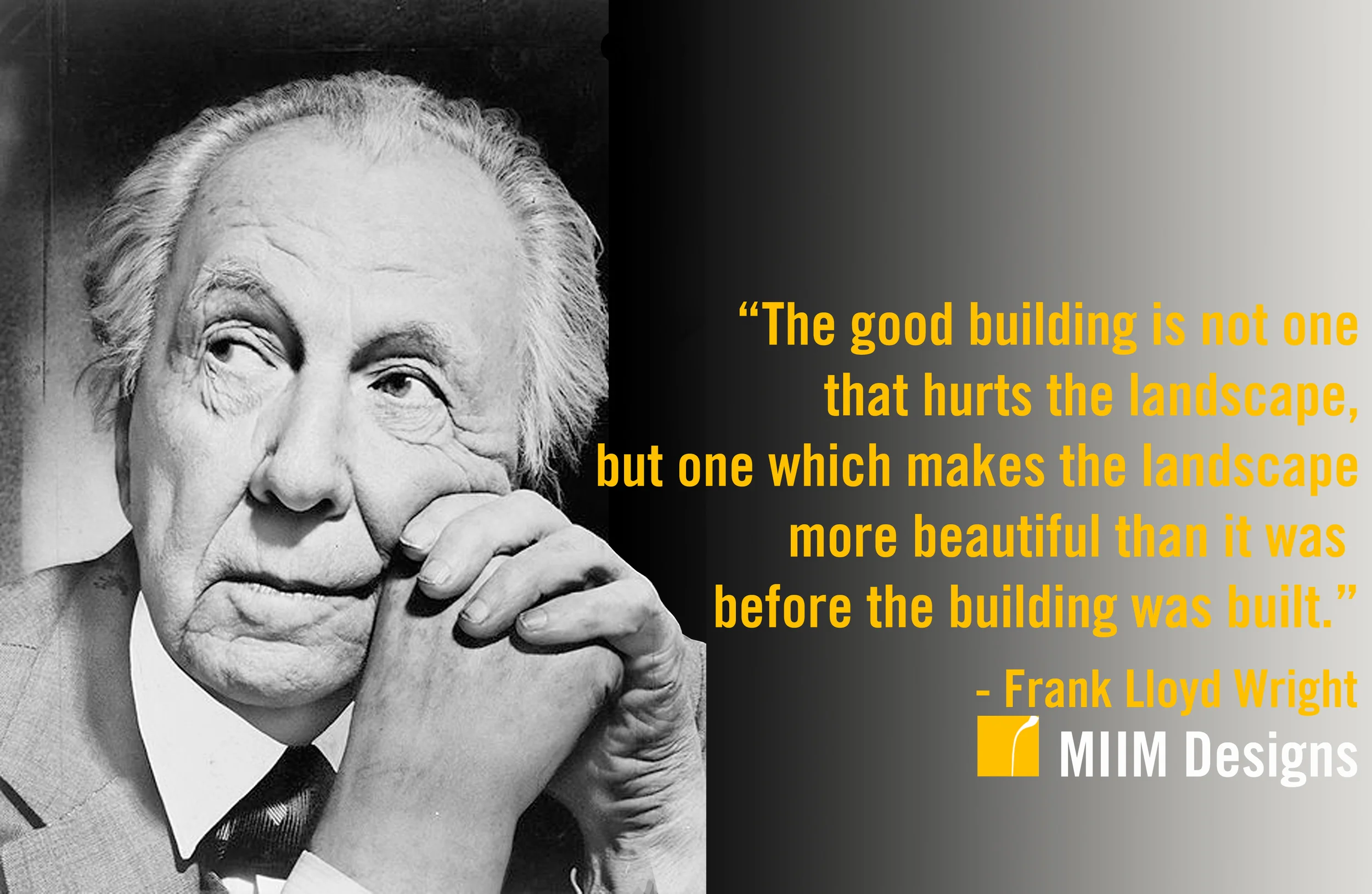 Last Friday, we at MIIM Designs celebrated Frank Lloyd Wright's Birthday. Granted, if Wright was alive today he would have been 157 years old; sadly, I never got to personally meet Wright. He died in 1959 at the age of 92. However, having lived and practiced architecture in Arizona, the "Wright Country", I allowed myself to be absorbed in the manifesto of Frank Lloyd Wright. Also, I had the luxury and opportunity to meet Wright's family, explicitly, Wright's grandson at one of the last residential homes that he designed.